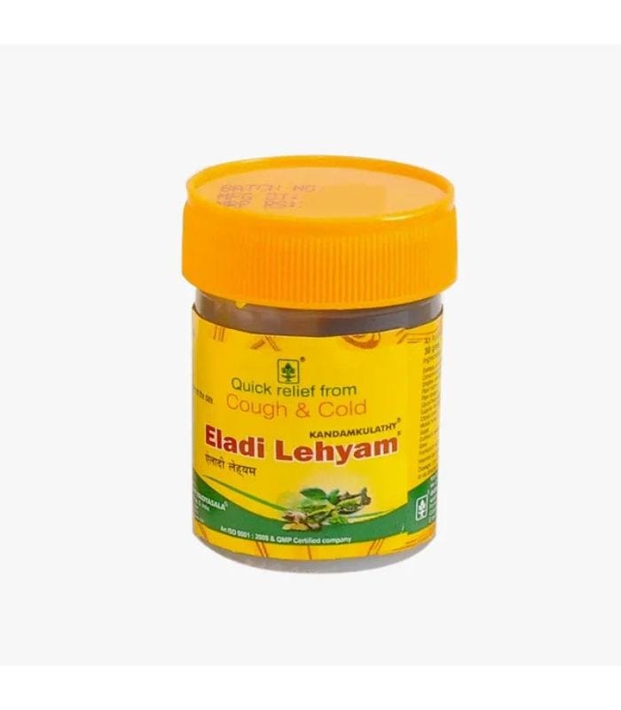 Eladi Lehyam is a classic Ayurvedic herbal formulation known for its effectiveness in managing cough, cold, and respiratory issues. Prepared using a blend of natural herbs, it helps soothe the throat, reduce congestion, and support better breathing.